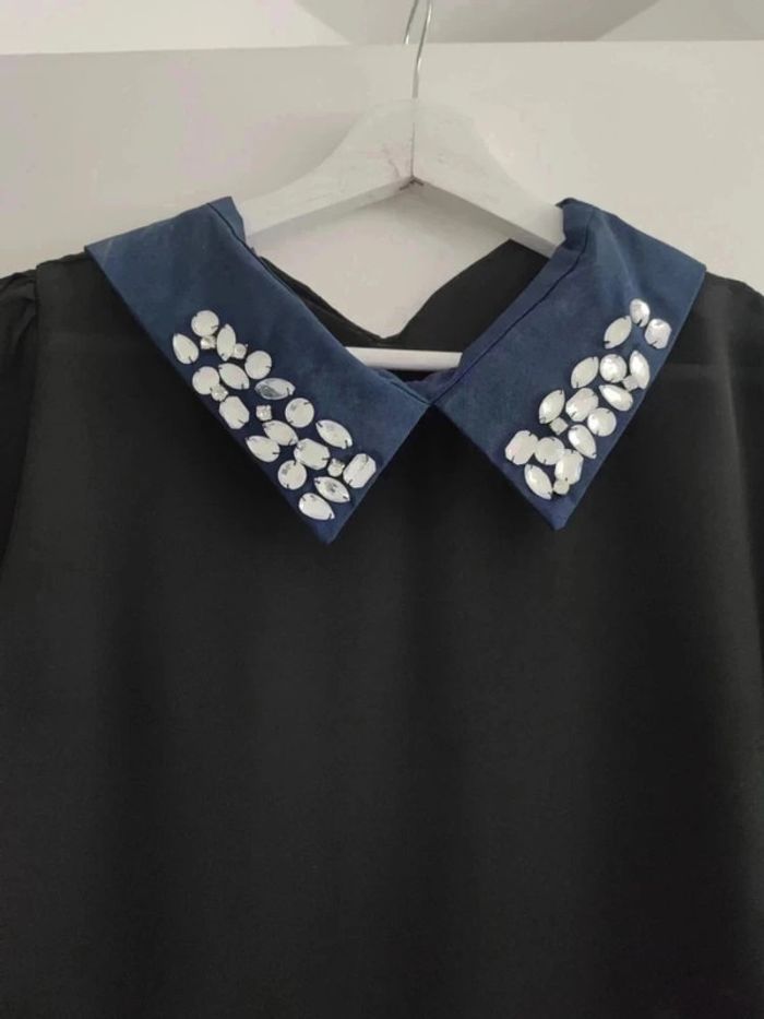 Jolie petite blouse noir et bleu marine Un seul défaut la couture a été refaite sur le côté a un endroit voir photo #stefanyyy_haut36