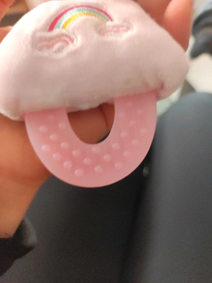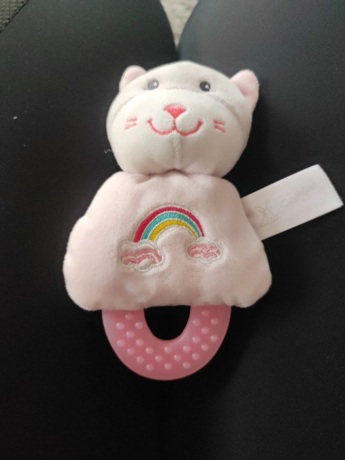 Anneau dentaire rose avec une jolie peluche jamais utilisé