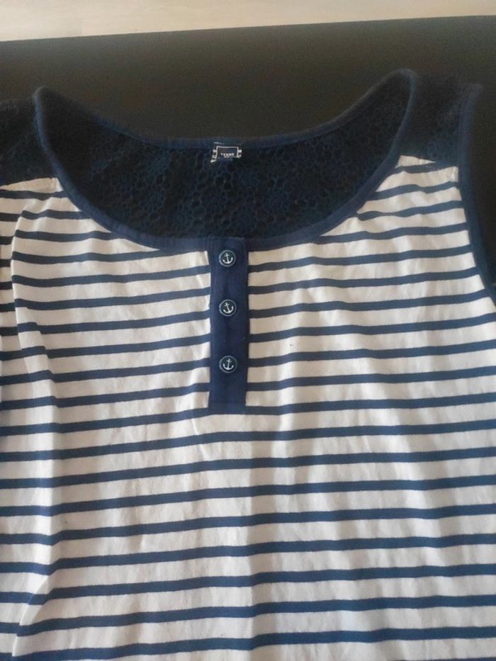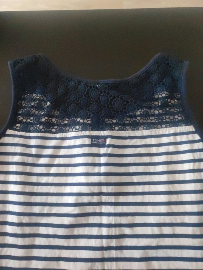 Robe longueur dessus du genou rayé blanc et bleu haut de la robe a l'arrière dentelle Taille 3