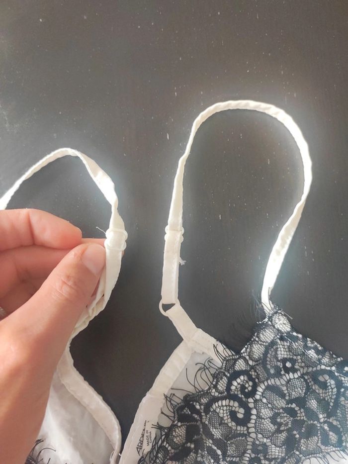 Top a bretelles matière satin et haut noir en dentelle bretelles réglables