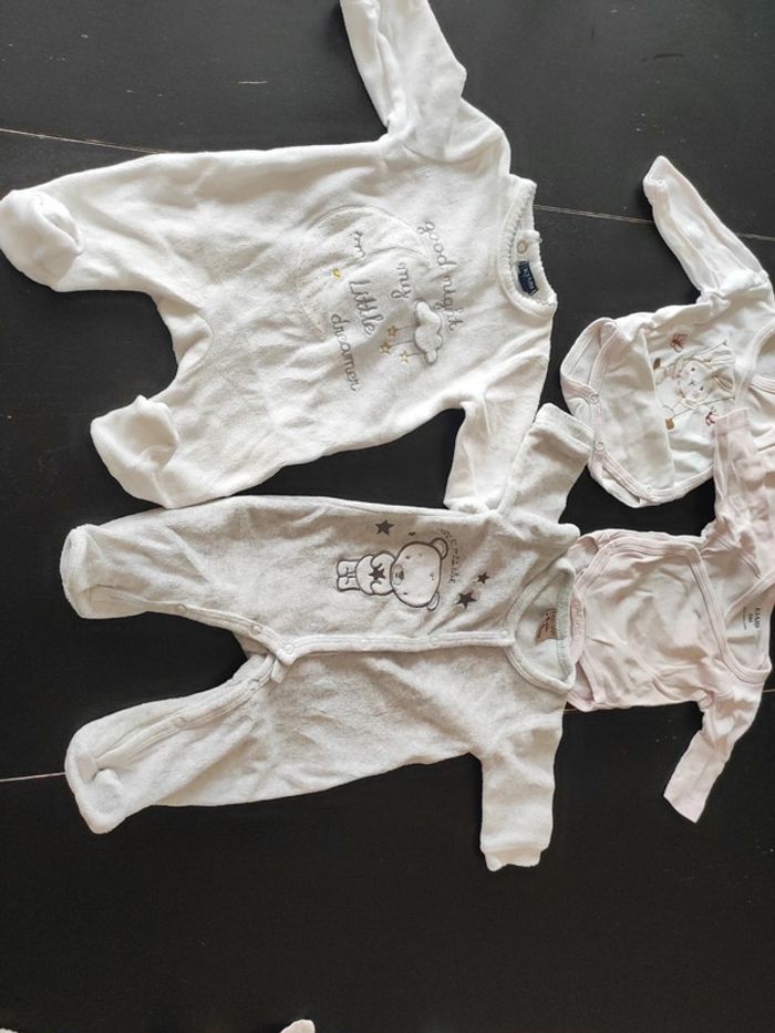 Lots bébé 0mois 2 boddie et 2 pyjamas Manque un peu de couleur sur pression boddie
