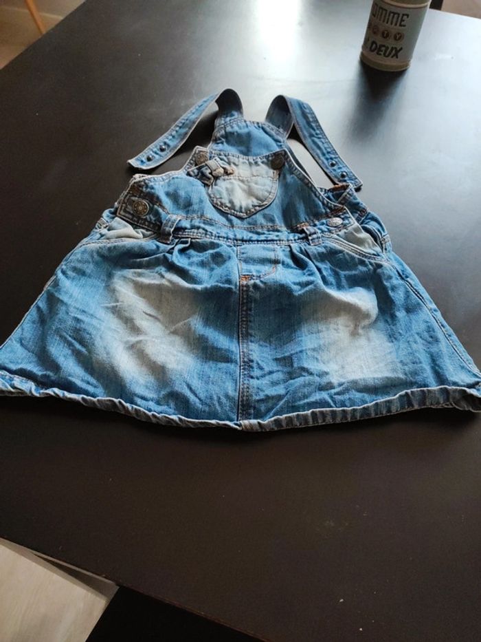 Jupe en jean réglable a 2 hauteurs au niveau des bretelles