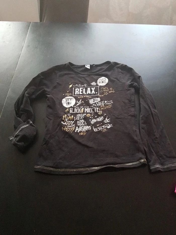 Tshirt noir mancje longue avec coutire couleur or Taille 7/8ans