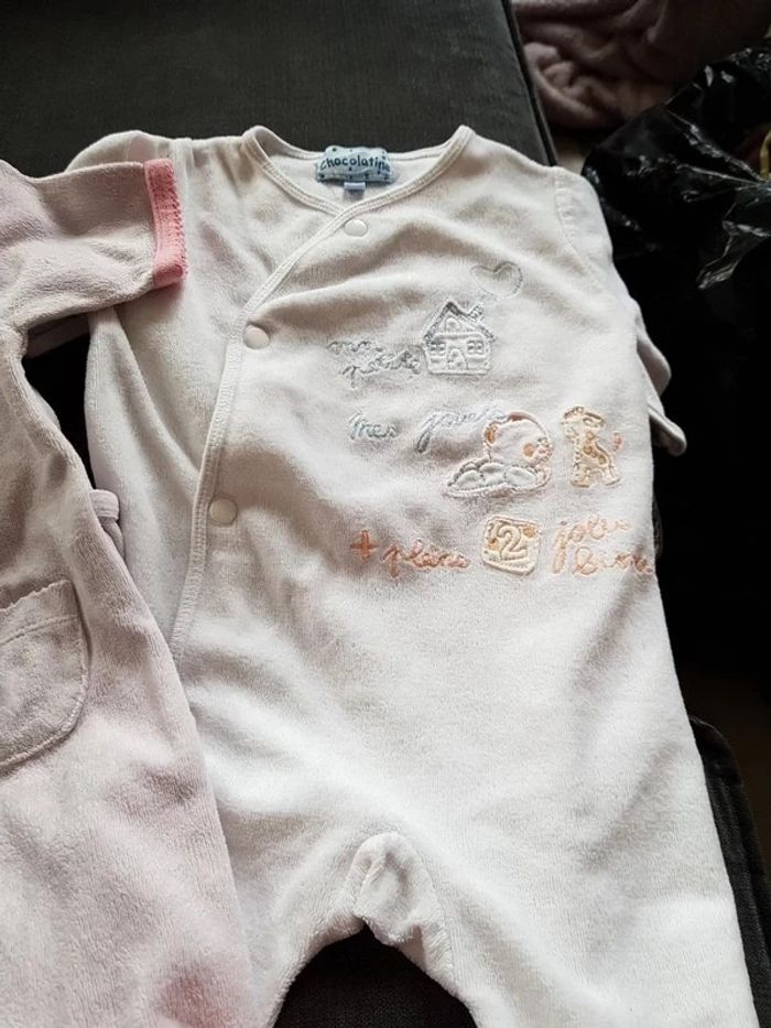 Lots de 2 pyjamas Sur 1 il y a une pression de déteint voir photo Taille 3mois