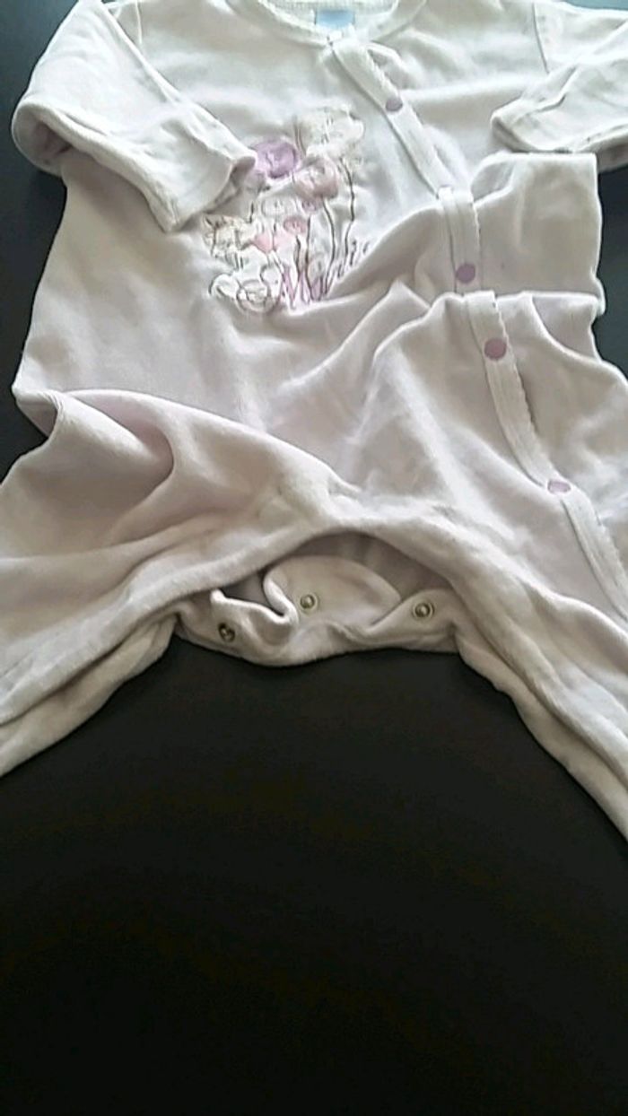 Pyjama 1 pièce mauve pâle avec pressions pour changer facilement bébé et pression devant (manque un peut de couleur sur une pression voir photo) 12mois