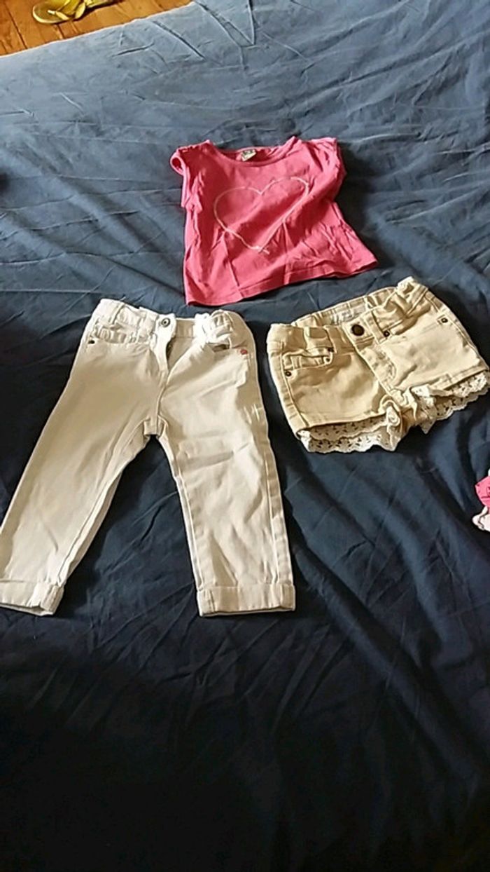 Pantalon blanc et t-shirt de chez tape à l'oeil et short H&m Bon etat taille 2ans