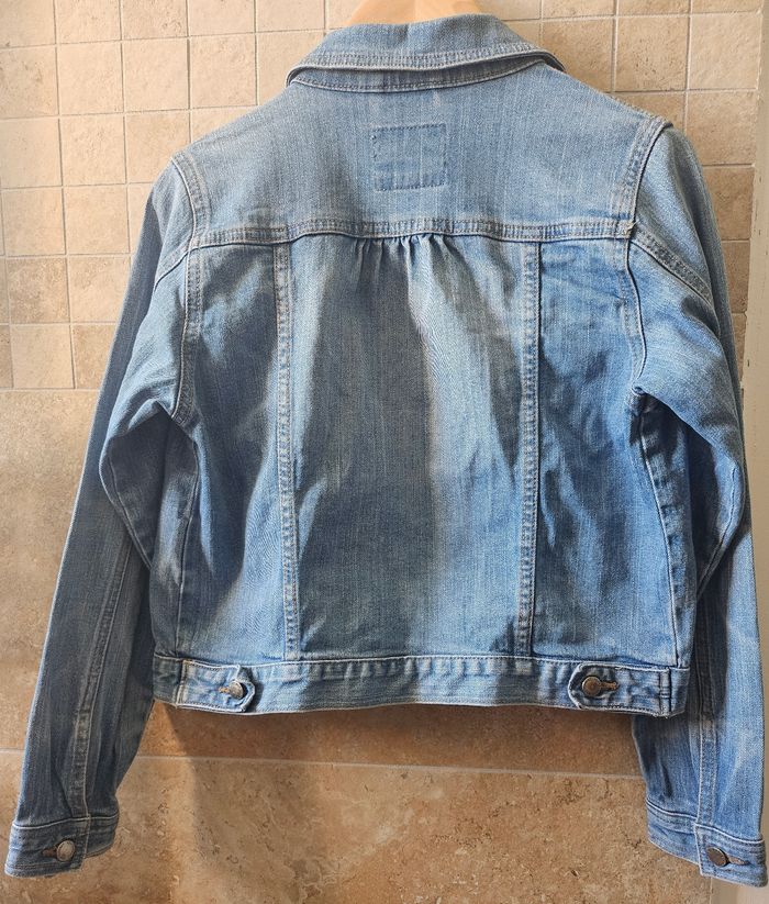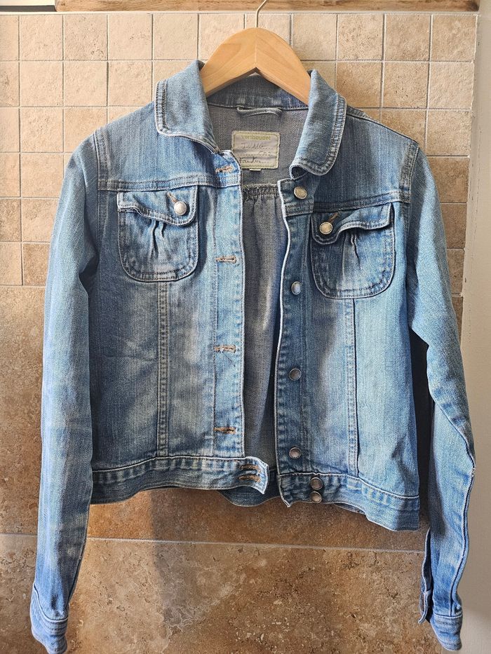 Bonjour, Une veste : - En jean, - Manches longues, - Marque : VERTBAUDET, - Ouverture boutonnée, - Poignets boutonnés, - 2 poches plaquées sur la poitrine, - Taille : 12 ans. En parfait état.