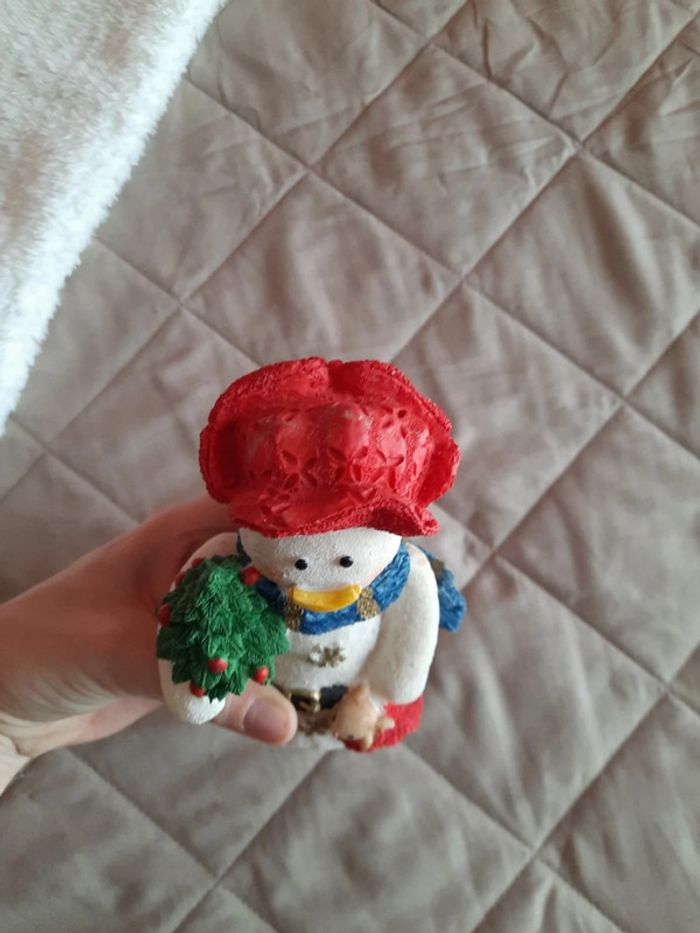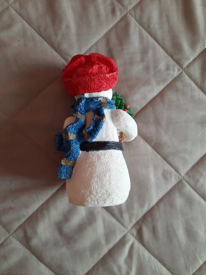 Figurine de Noël bonhomme de neige avec sapin à la main