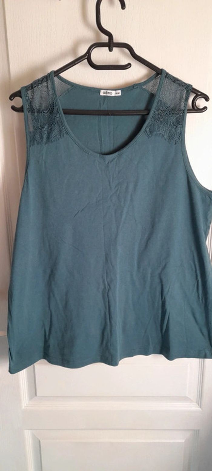 Débardeur avec dentelles aux épaules bleu canard 46/48 Très bon état #rachel62500femme4648