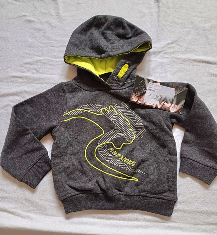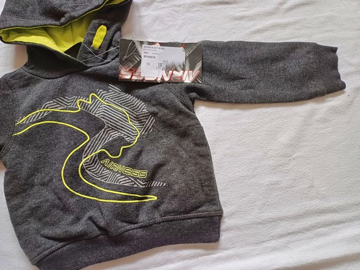 Vends Pull sweat à capuche Pour garçon taille 18 mois Neuf avec étiquette Jamais porté Prix : 10 euros Maison non fumeur et sans animaux