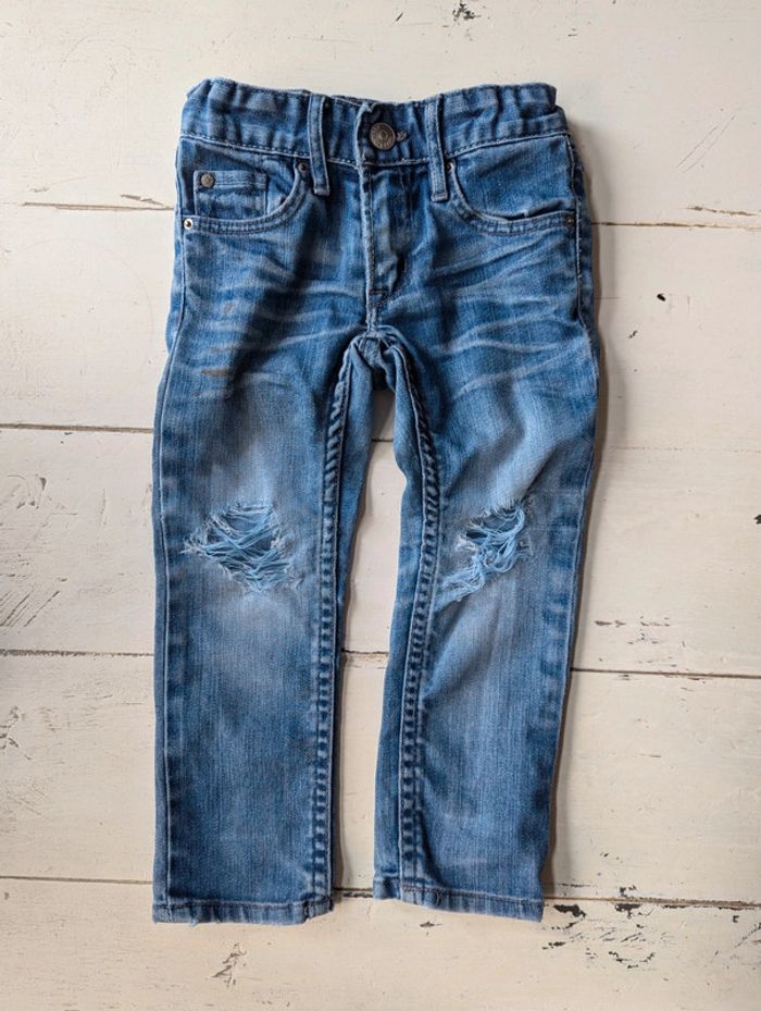 Lot de 3 jeans troués H&M, style destroy : - 2 jeans en taille 98, 2-3 ans - 1 jean en taille 92, 1,5-2 ans (même longueur que les deux autres mais un peu plus serré à la taille) D'autres vêtements bébé à vendre dans mon dressing, #24moisDLau / #36moisDLau n'hésitez pas à faire des lots !