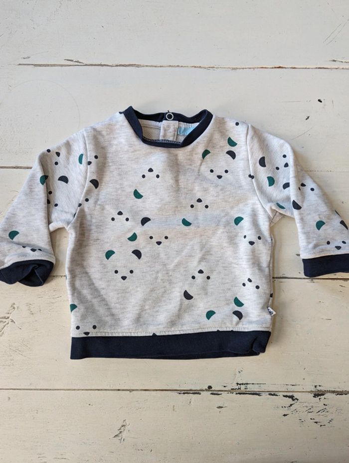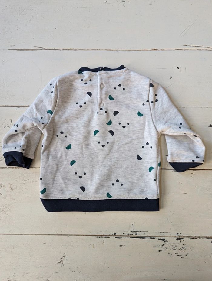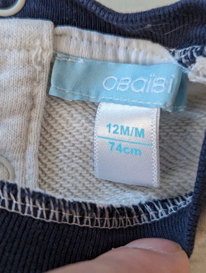 Sweat de marque Obaibi en taille 12 mois, pression dans le dos, coloris gris chiné avec imprimé Très bon état D'autres vêtements bébé à vendre dans dressing #12moisDLau : n'hésitez pas à faire des lots pour amortir les frais de port et activer les réductions 😉