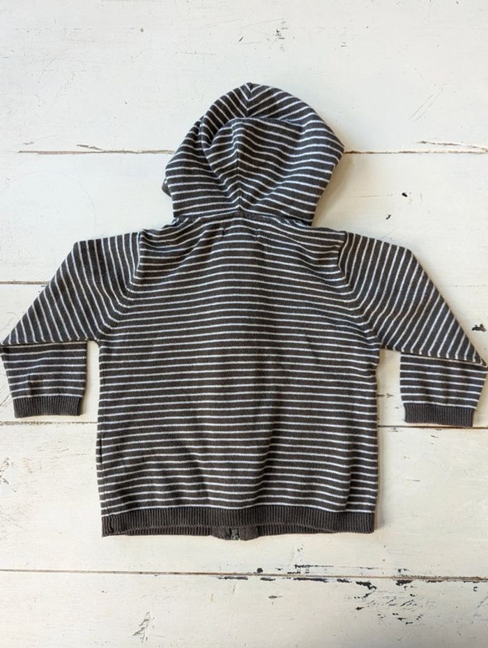 Joli gilet zippé à capuche de marque Obaïbi, fin et doux, en coton, coloris kaki rayé blanc. Taille 12 mois. Très bon état (étiquette prénom collée à l'intérieur) D'autres vêtements bébé à vendre dans mon dressing #12moisDLau : n'hésitez pas à faire des lots pour activer les réductions et amortir les frais de port !