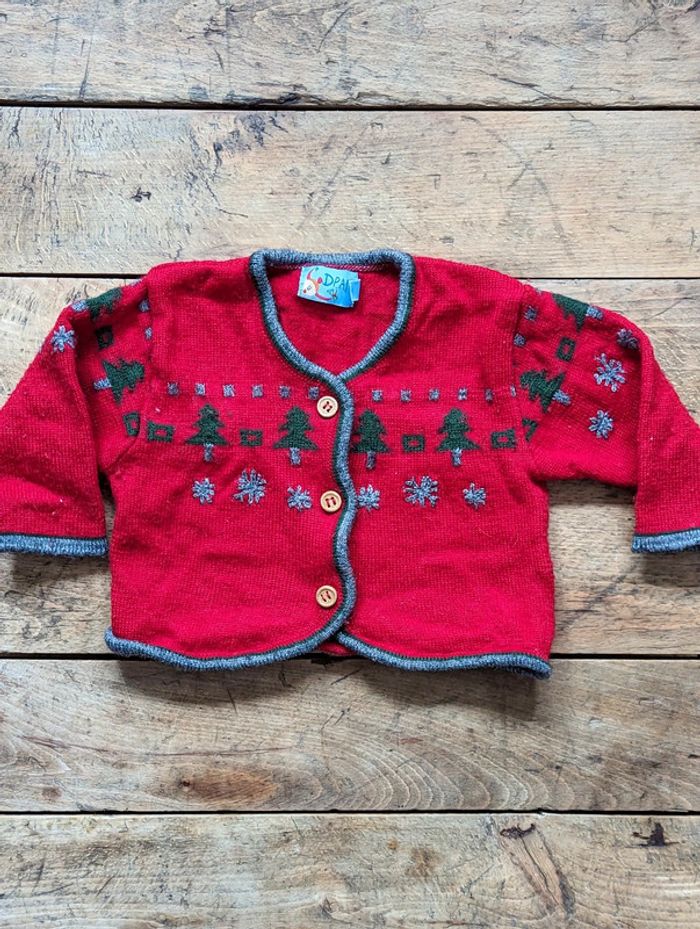 Gilet bien chaud de marque DPAM en taille #6moisDLau Coloris rouge avec motifs hivernaux, boutons en bois. Très bon état. D'autres vêtements bébé #6moisDLau à vendre dans mon dressing : n'hésitez pas à faire des lots pour activer les réductions et amortir les frais de port !
