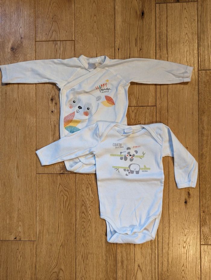 Lot de 2 bodies de marque Absorda en taille #6moisDLau Blanc avec jolies impressions panda Un body à fermeture croisée et l'autre à encolure bateau Très bon état D'autres vêtements bébé #6moisDLau à vendre sur mon profil : n'hésitez pas à faire des lots pour amortir les frais de port !