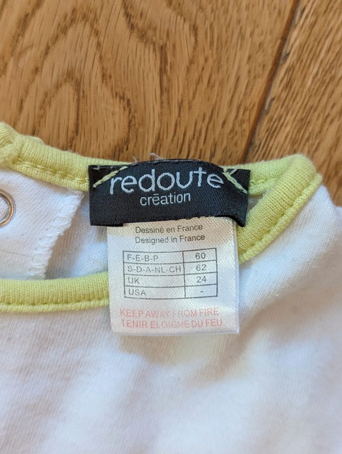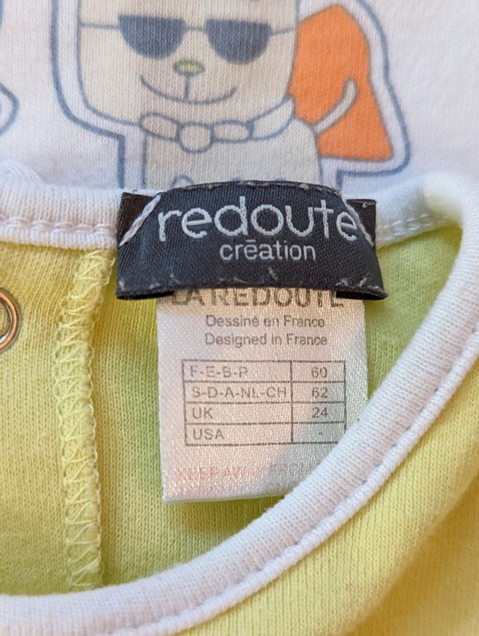 Lot de 2 pyjamas assortis, en coton, de marque La Redoute, taille 3 mois #3moisDLau Coloris blanc et vert anis. Fermeture par pression au dos. Bon état général, pas de trous ni de tâches, mais boulochent un peu par endroit. D'autres vêtements bébé à vendre sur mon profil ! #3moisDLau