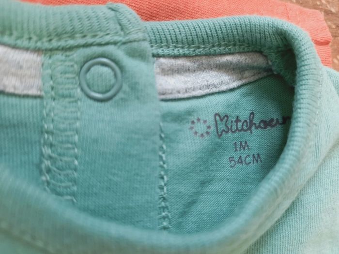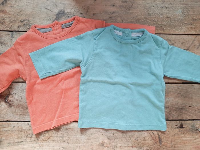 Lot de 2 tee-shirts #1moisDLau à manches longues de marque Kitchoun (Kiabi) en parfait état. Fermeture par pressions au dos pour faciliter l'enfilage. D'autres vêtements bébé à vendre sur mon profil ! #1moisDLau