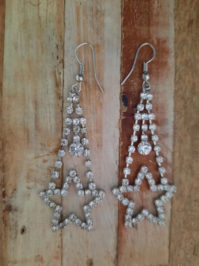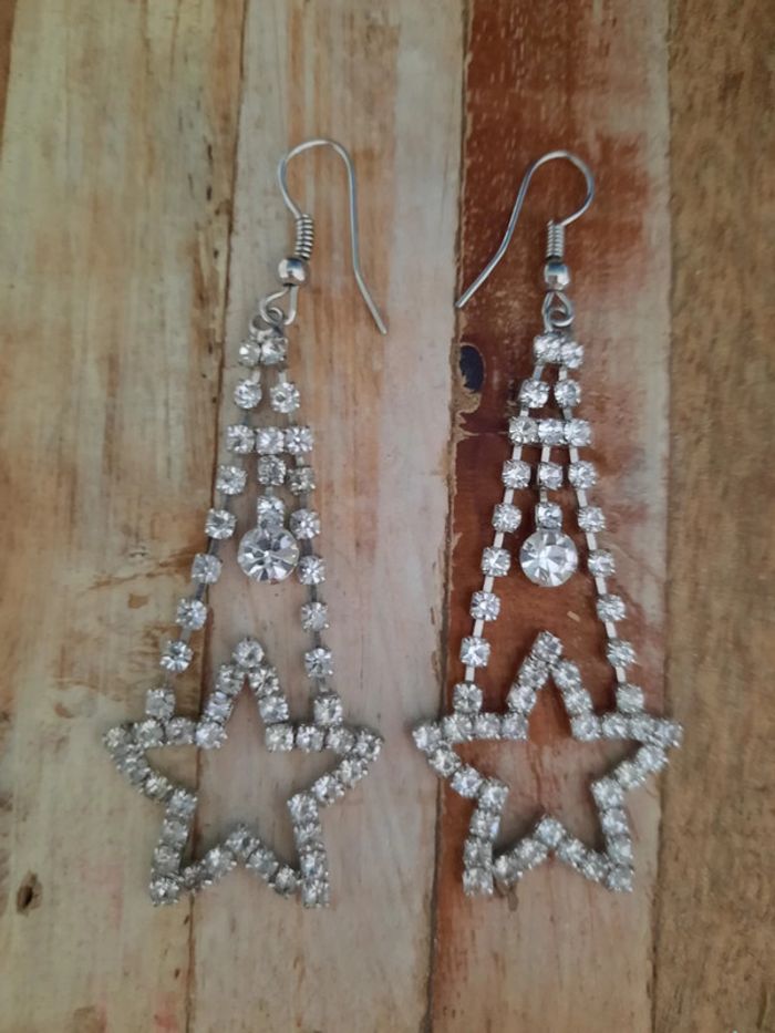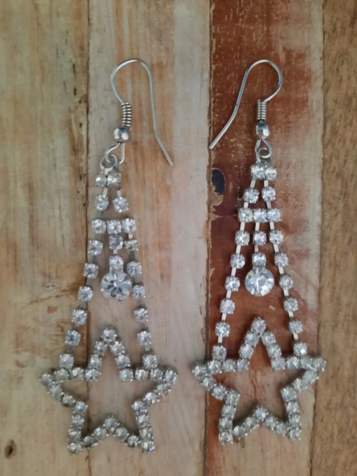 Boucles d'oreilles fantaisie en strass, motif étoile Portées 1 ou 2 fois seulement, comme neuves