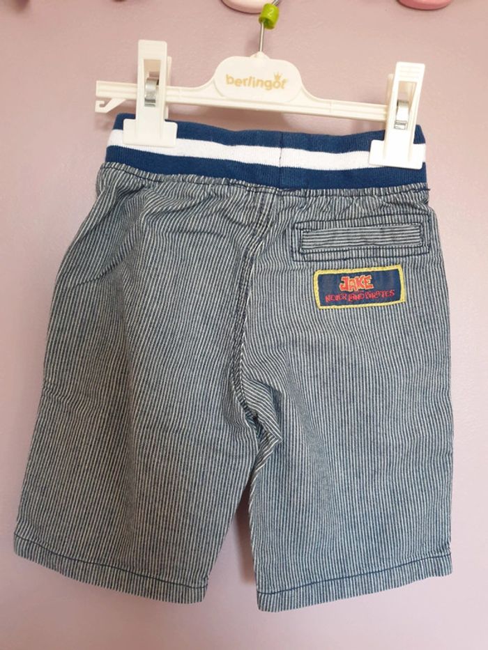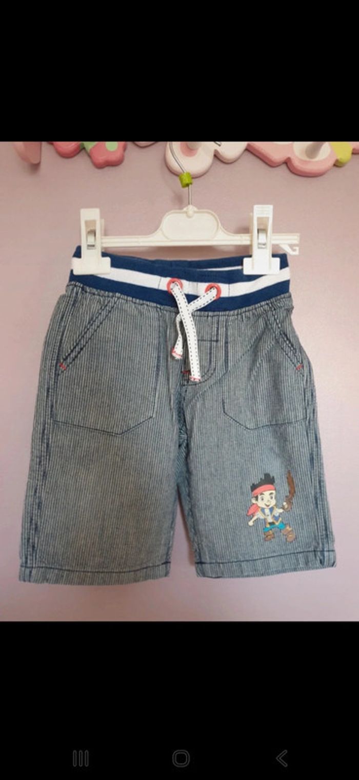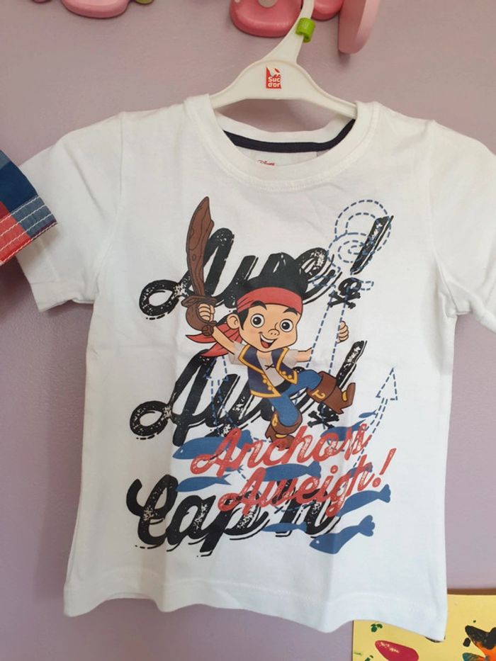 Ensemble composé d'une chemise à manches courtes + haut/ tee-shirt manches courtes + bermuda taille élastique, bon état. Taille 98 cm, grand 3 ans. Disney Jake et les pirates. #garçon3ansgain_de_place