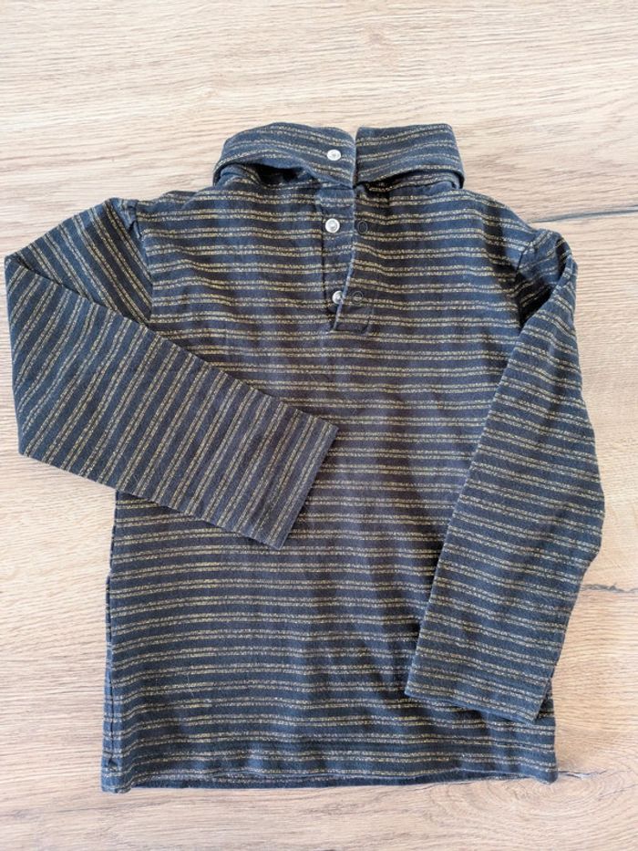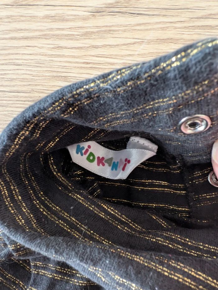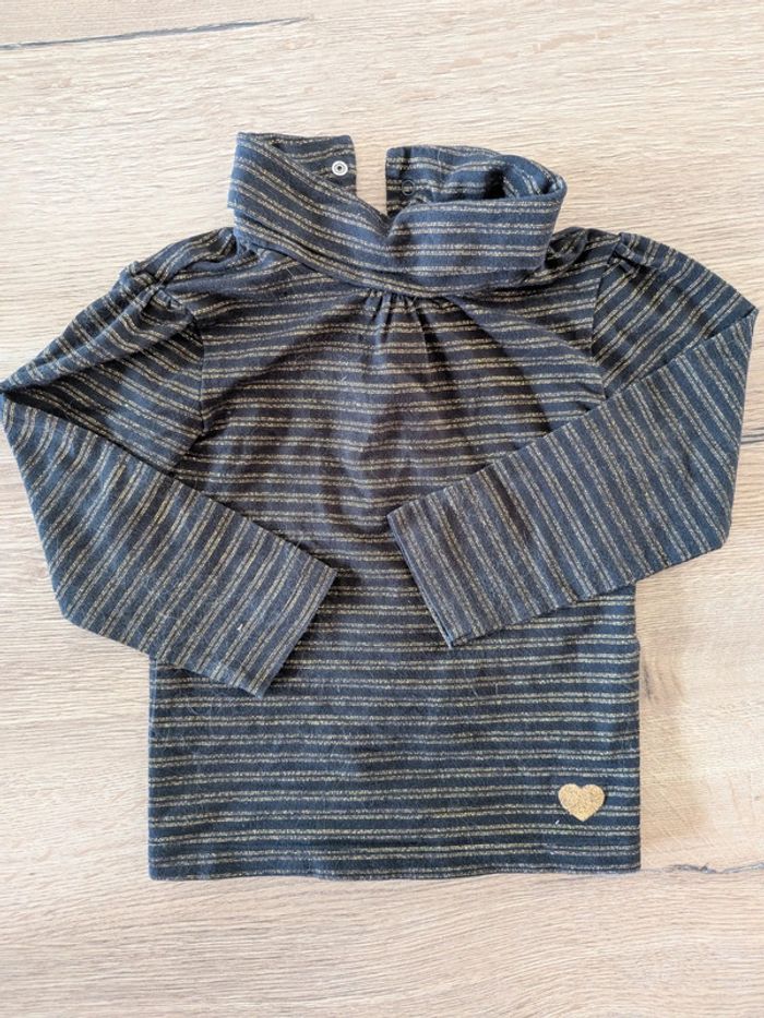 T-shirt manche longue avec col roulé. Noir avec des rayures dorés. #tshirtmancheslongues #kidnkanoi #colroulefille