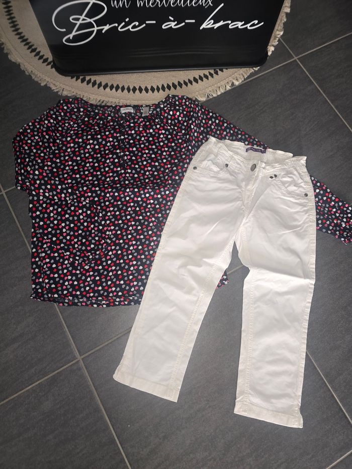 Bonjour 👋 Je vend ce : 👉t-shirt ml okaidi 12 ans Couleur noir rose blanc gris motif cœur ❤️ 👉 pantacourt gemo 12 ans Couleur blanc Maison 🏠 non fumeur et sans animaux