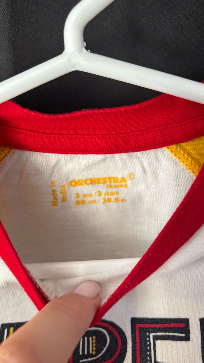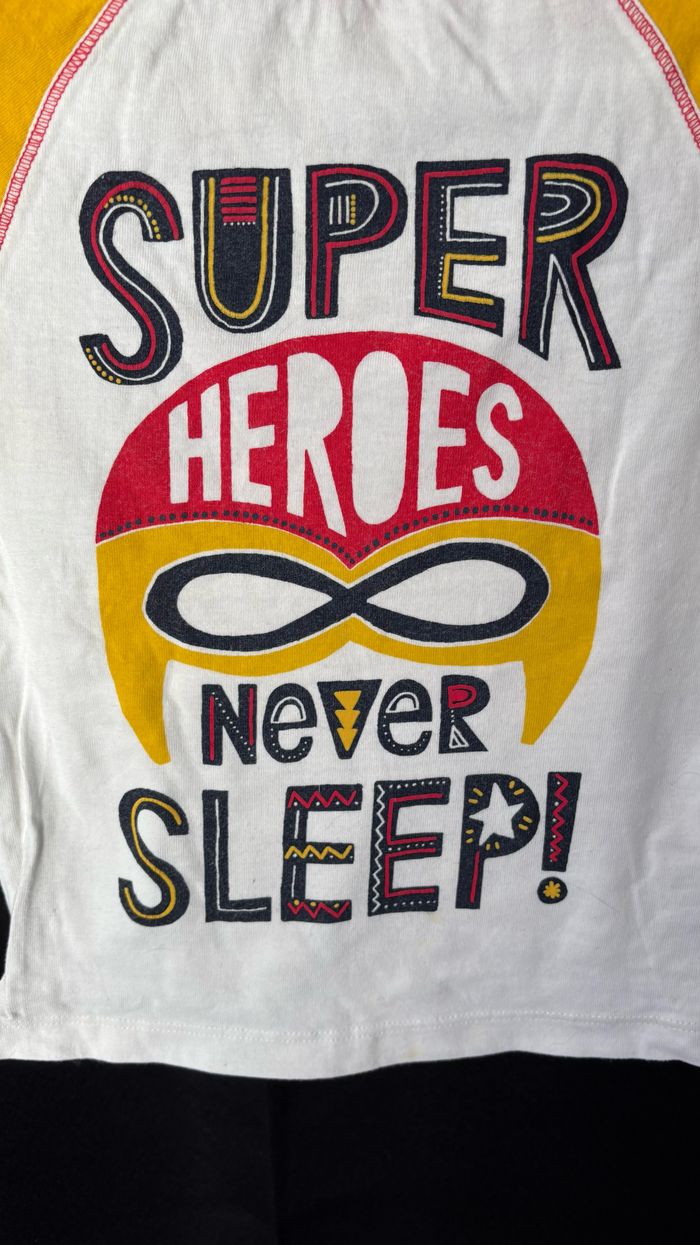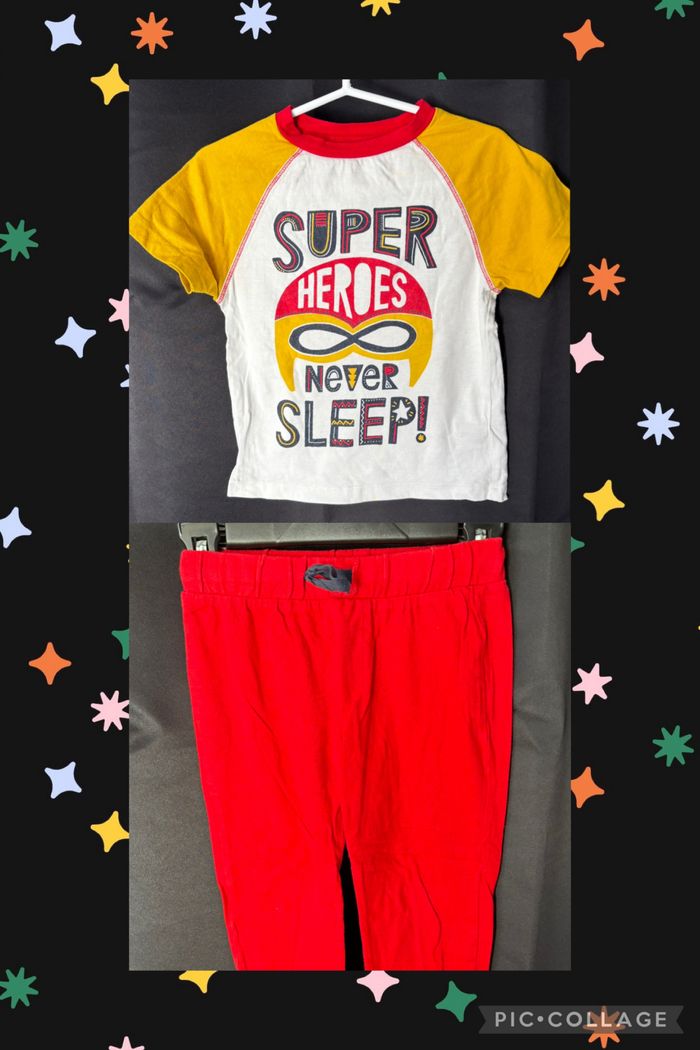 Haut Multicouleur jaune, rouge et blanc avec motif super héros et pantalon rouge