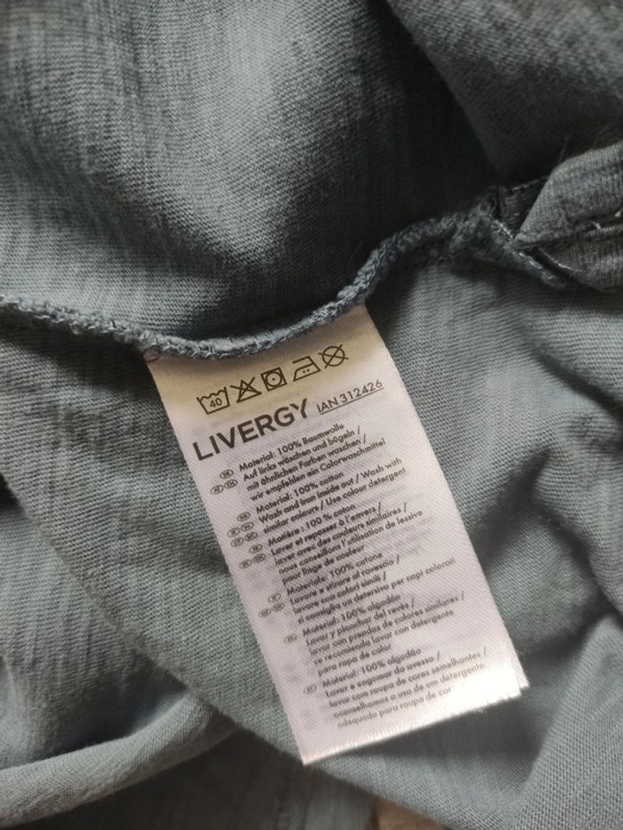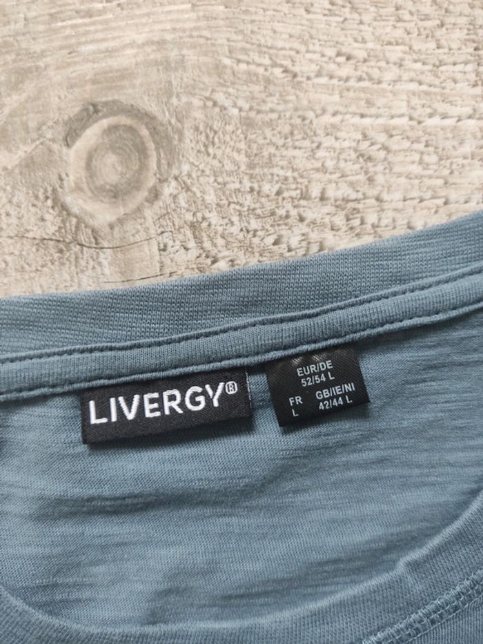 Tee-shirt manches courtes bleu gris motif imprimé blanc et bleu foncé taille L Livergy - photo numéro 6