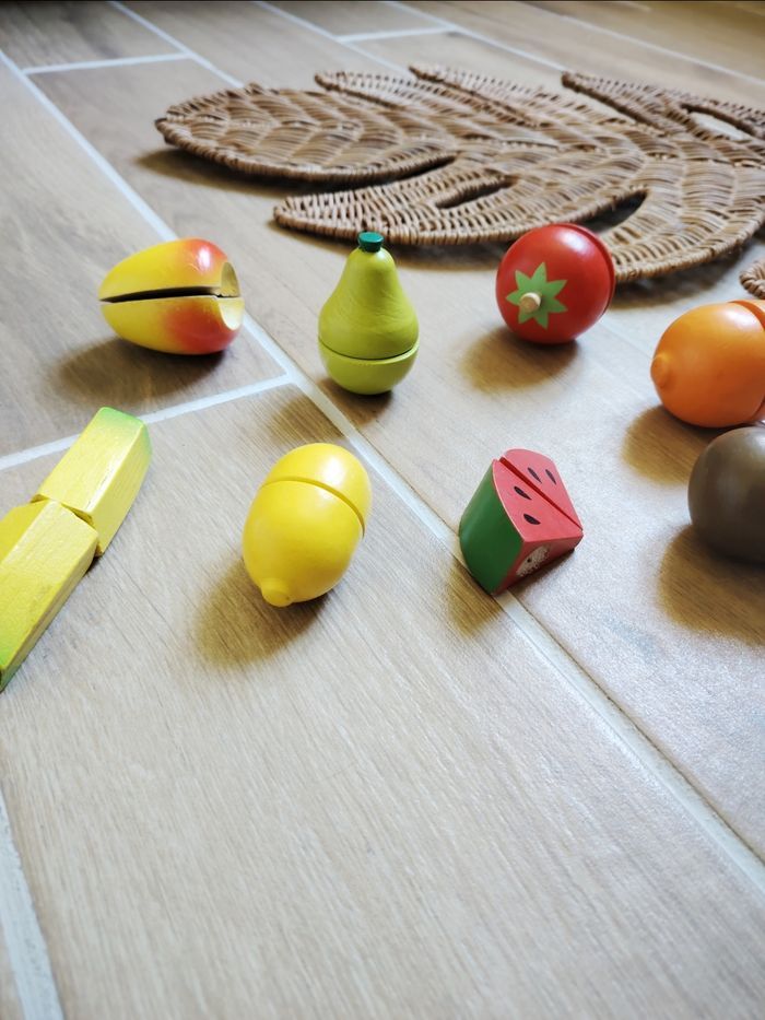 🎀Complétez la cuisine de votre petit chef avec ce lot de fruits en bois à découper. Un classique du jeu d'imitation qui permet d'apprendre le nom des fruits tout en s'amusant à cuisiner comme les grands.
