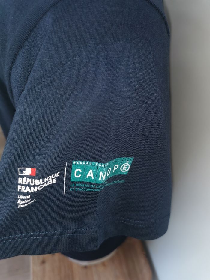 👕 ÉTAT DE L'ARTICLE: 10/10 ✅️ Sans étiquette, jamais porté Tee-shirt 👕 marine 🧔 Sol's Taille M • Matière: 100% coton • Coupe tubulaire • Col en V côtelé • Manches courtes serrées • Impression Réseau Canopé sur la poitrine et dans le dos • Couleur: Bleu marine 🟦 • 📏 Longueur: 73 cm • 📏 Mesure épaules: 47 cm • 📏 Mesure sous aisselles: 51 cm Parfait état👌, jamais porté 🌹