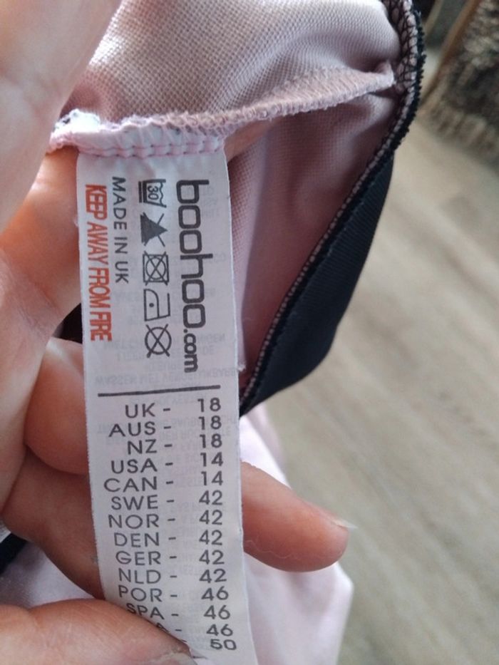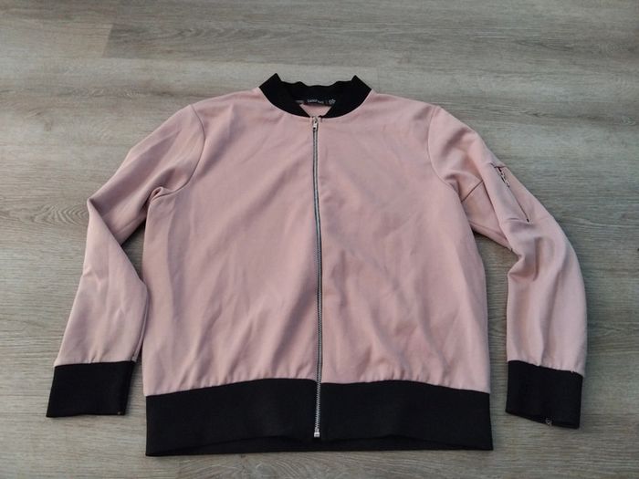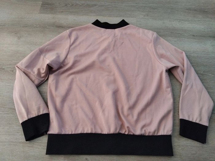 Bonjour, je vends cette veste fine rose pâle et noire de la marque Boohoo en bon état. Taille 46. Lavé maison non fumeur.