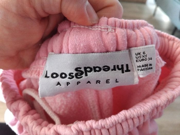 Bonjour, je vends ce bas de jogging rose de la marque Loose Threads Apparel taille 34 en bon état. Lavé maison non fumeur.