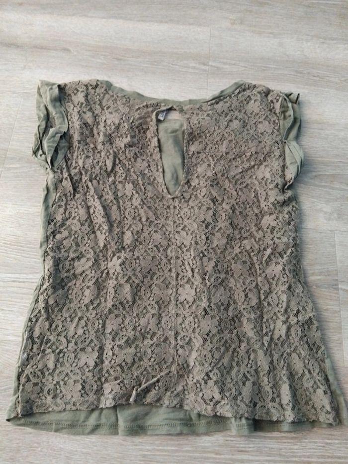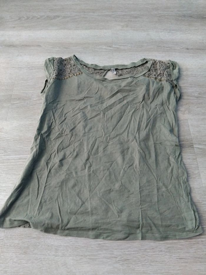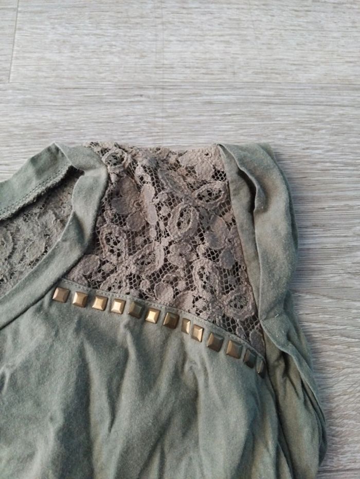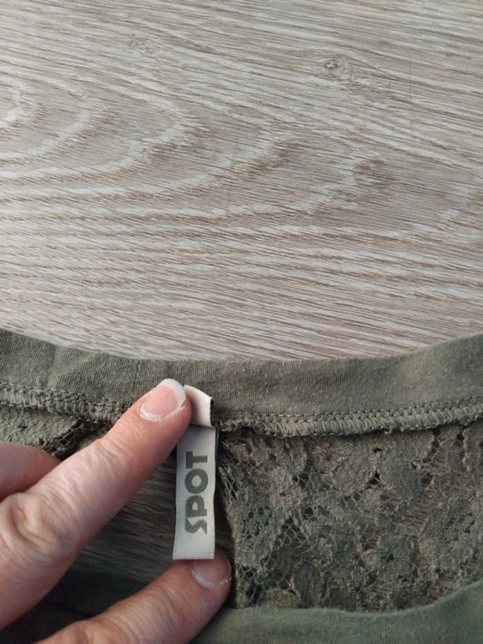 Bonjour, je vends ce tee shirt à manches courtes kaki épaules et dos motifs ajourés de la marque Spot taille L en très bon état. Lavé maison non fumeur.