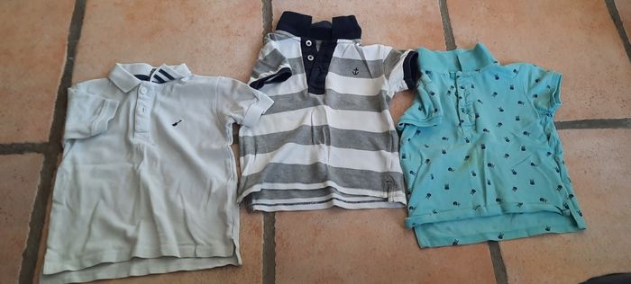 Lot de 3 polos Marque Tape à l'œil / kiabi Taille 3 A Ils sont en bon état le bleu ciel présente quelques tâches mais n'empêche pas son port N hésitez pas à me contacter si besoin ☺
