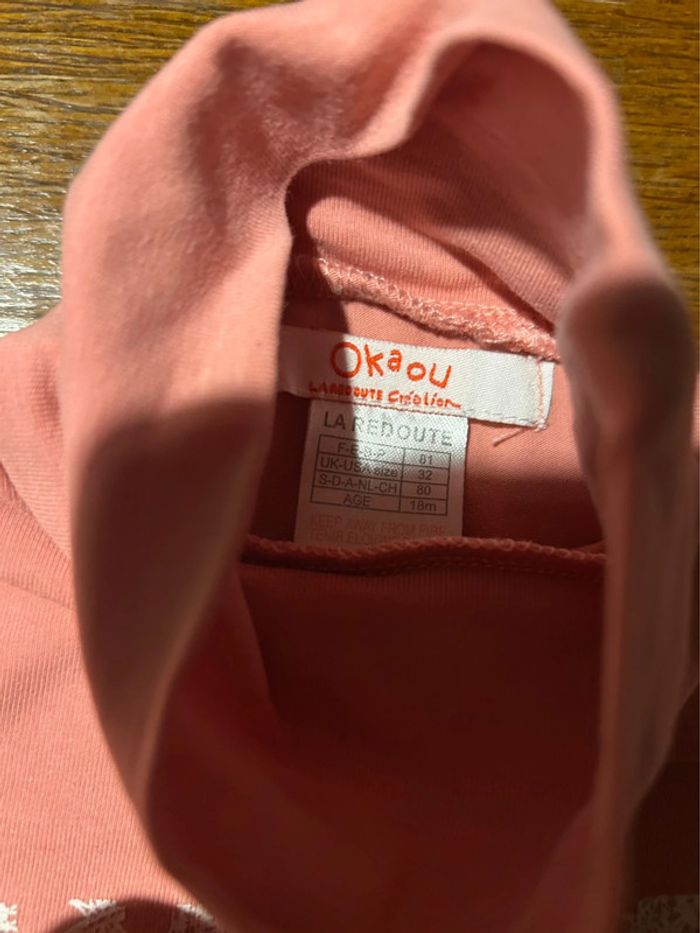 T-shirt manche longue à col roulé rose taille 18 mois marque okaou la redoute collection en très bon état #vetement18moisVero66xx