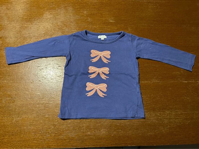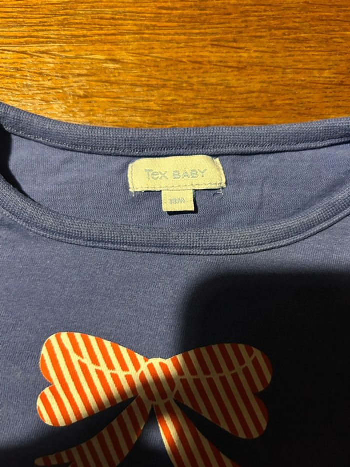 T-shirt manche longue bleu avec noeud rouge et blanc taille 18 mois marque tex baby en très bon état #vetement18moisVero66xx