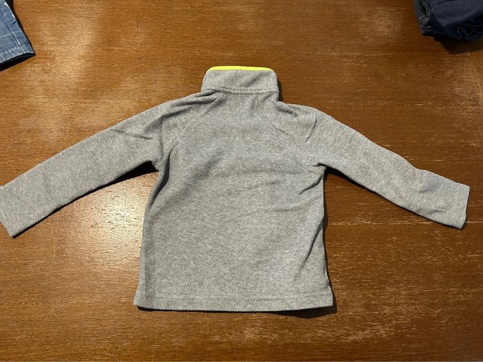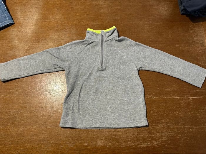 Pull polaire gris clair et bordure col vert fluo taille 4ans marque tissaia en très bon état #vetement4ansVero66xx