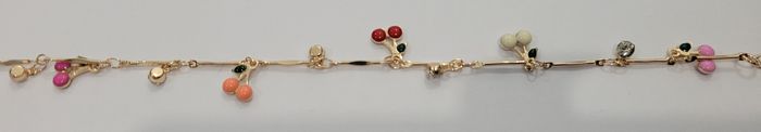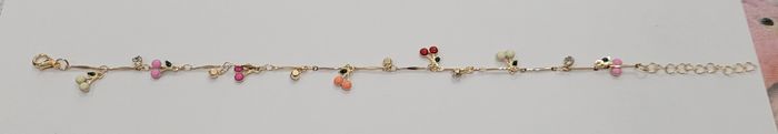 CHAINE CHEVILLE PETITES CERISES MULTICOLORES ! NEUF ! Chaine de cheville coloris doré avec petites cerises multicolores . Longueur 22 cms +4 cms de chainette réglable. N'hésitez pas à regarder mes autres ventes. Envoi rapide et soigné.