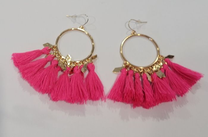 BOUCLES D'OREILLES CREOLES POMPON ROSE FLUO 1 jolie paire de boucles d'oreilles longues pompon. Coloris des franges: ROSE FLUO. Dimensions: Longueur totale: 8,5 cms . N'hésitez pas a consulter mes autres annonces ( d'autres coloris disponible) envoi rapide et soigné.