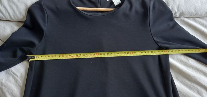 Robe noire H&M Col rond Manches longues 2 poches côté Fermeture zip dos Tissu fluide Longueur 60 cm Largeur épaules 40 cm Taille XS / 34 #T34_imoddeco