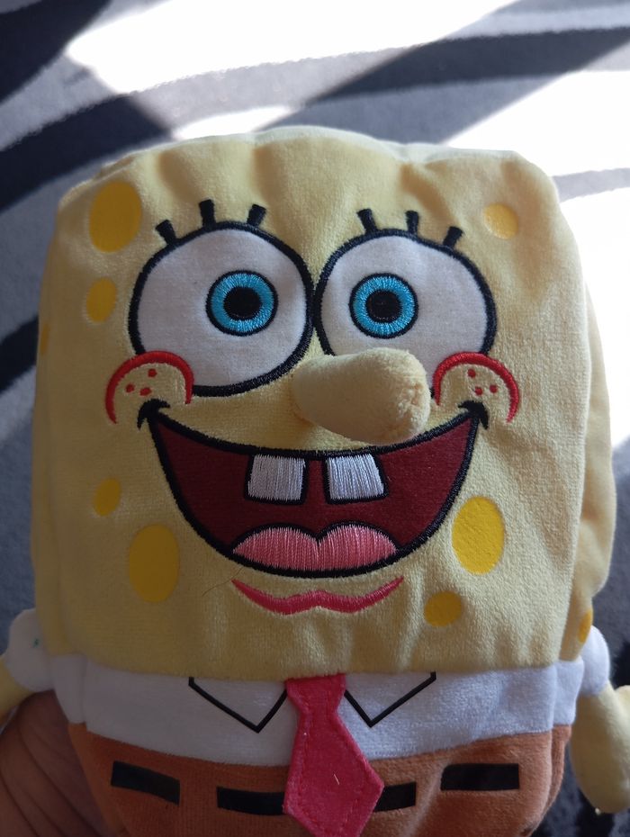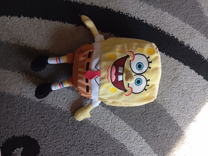 Peluche Bob l'éponge en très bon état, cependant fils tiré sur ses mains voir photos.