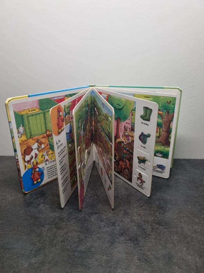 Livre 📙 cartonné avec +80 rabats toutes tailles - mes premiers mots Thème : à la ferme ⚠️ Quelques rabats scotchés mais aucuns ne manque #harmonie1017livres