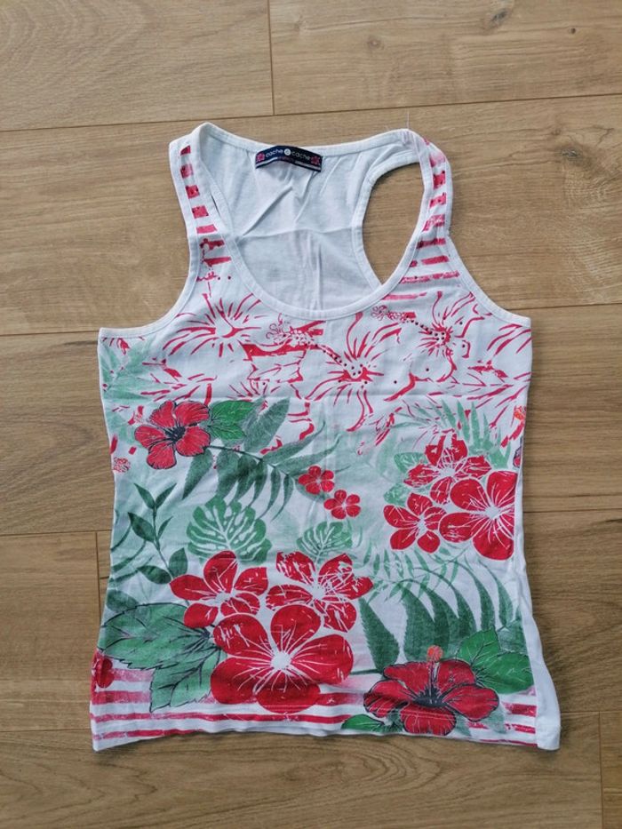 Débardeur 🎽femme blanc fleuri Avec perle Taille S