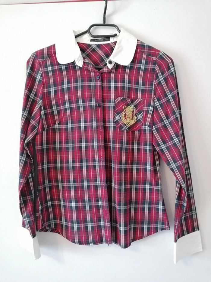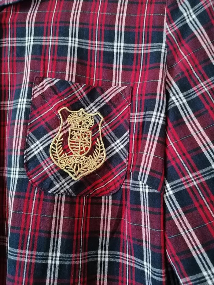 Chemise pour femme Style écossais 🏴󠁧󠁢󠁳󠁣󠁴󠁿 Bouton Broderie doré sur la poche devant Coupe cintrée