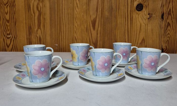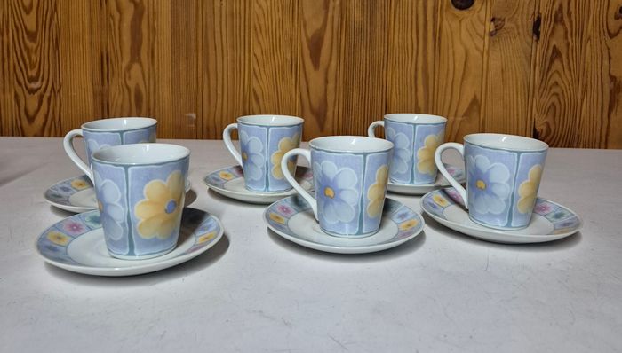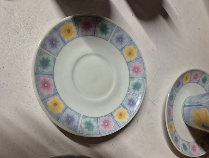 LOT 6 tasses à expresso blanche et bleu avec fleurs colorés avec leur sous tasse assortis. Jamais servi, sans emballage #lottasse #tasseexpresso #soustasse #tasseacafe #tasses #tasseavecsoucoupe