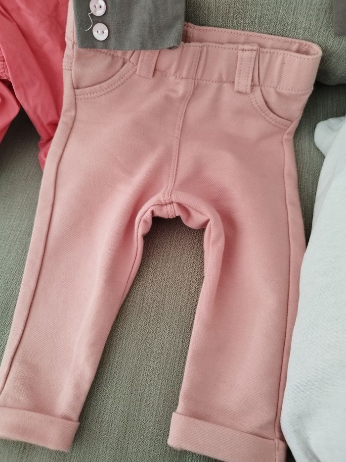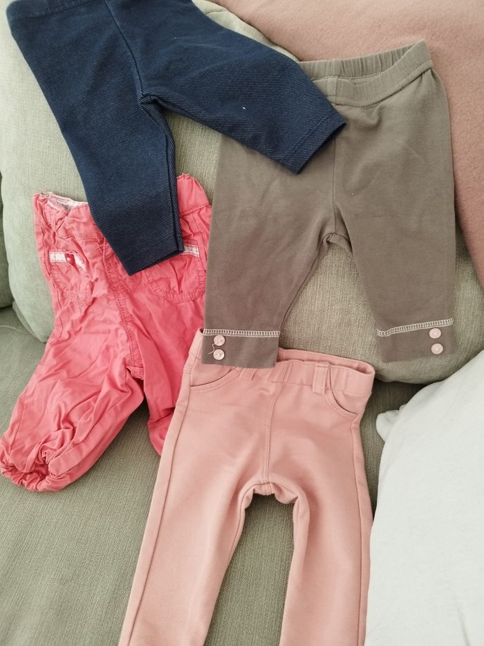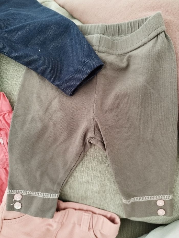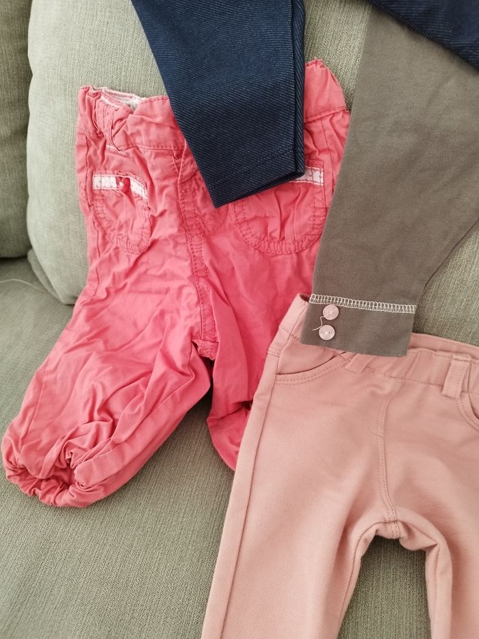Pas de baisse de prix 2 jeggings rose et bleu marine, pantalon rose et legging marron avec boutons roses