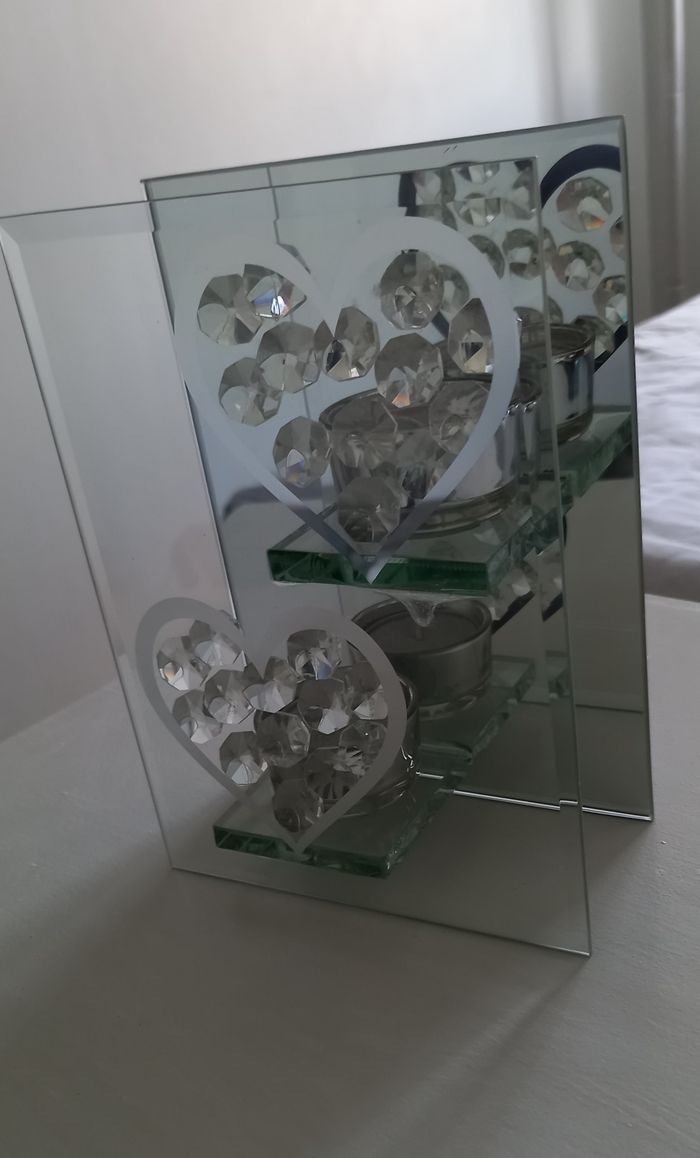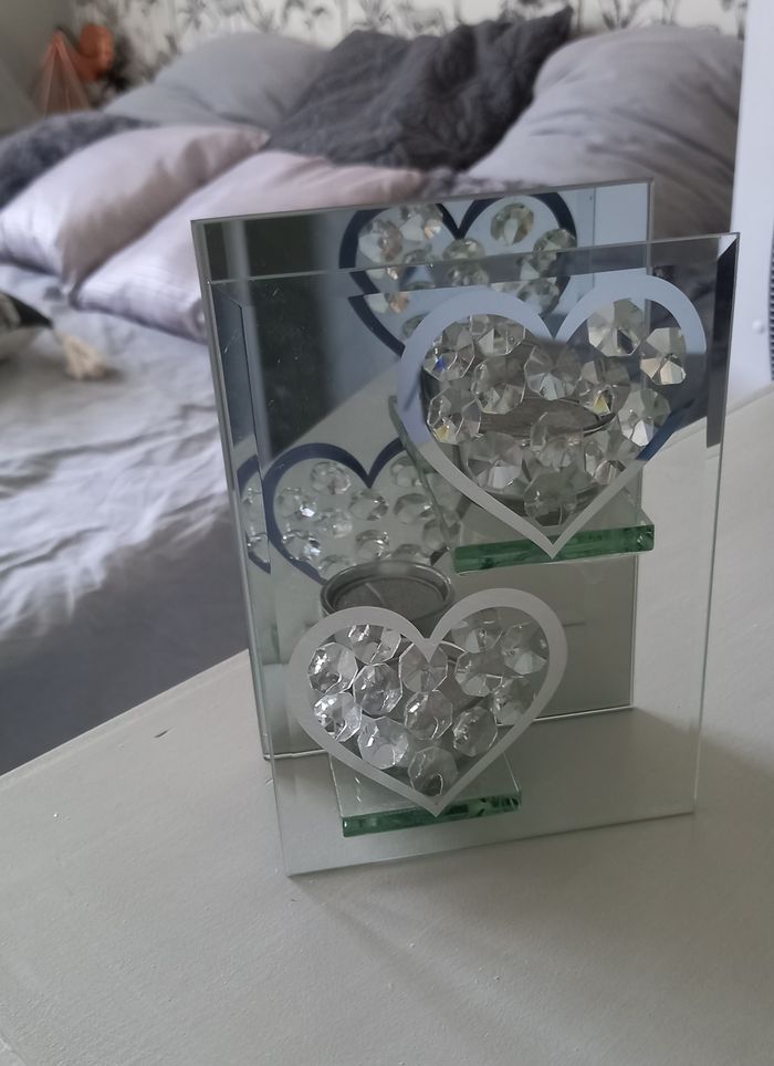 Bougeoir cœur en verre Les cœurs se reflètent sur le miroir Dimensions 18 x 12 x 6 cm #deco_imoddeco