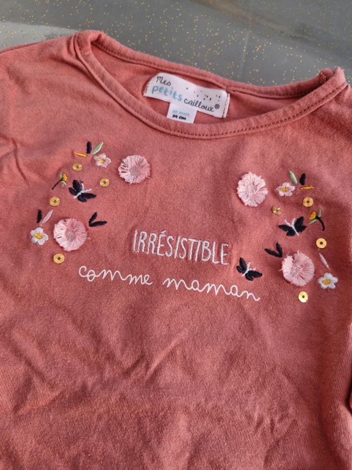 Tee shirt rose saumon, manches longues Très bon état 36 mois, 94 cm Mes petits cailloux #marie5659enfant3ans
