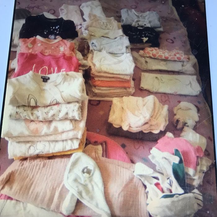 Bonjour Je vends un gros lots fille 0/1 mois Il y a de tout ☺️ Environ 30 pyjamas, 45 bodies, 10/12 pantalons/leggings 6 haut / tee-shirts 4 gilet blouson, 2 robes, 2 gigoteuses, brassière en laine tricotée mains et des bavoirs, des chaussettes et des bonnets le tout en bon état ( certaines pièces quasi neuves d’autres un peu plus usées ) il y a aussi un cale bébé et coocoonababy et j’en oublie et j’en rajoute lol 😂 Vous avez quasiment tout pour bien commencer cette merveilleuse aventure Merci 🙏