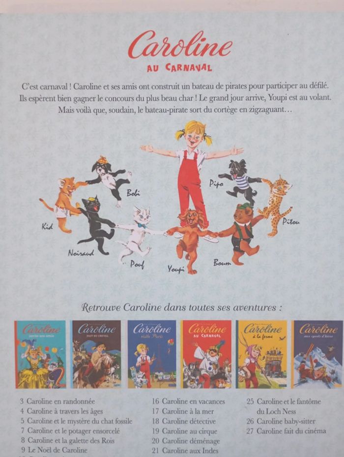 C'est carnaval ! Caroline et ses amis ont construit un bateau de pirates pour participer au défilé. Ils espèrent bien gagner le concours du plus beau char ! Le grand jour arrive, Youpi est au volant. Mais voilà que, soudain, le bateau-pirate sort du cortège en zigzaguant... Éditeur ‏ : ‎ Hachette Jeunesse 24 pages Âge de lecture ‏ : ‎ 3 - 6 ans Dimensions ‏ : ‎ 19.5 x 0.7 x 26.8 cm Livre NEUF Je vends d'autres livres de Caroline #phil_peg_caroline #caroline #carnaval #pierrebrobst