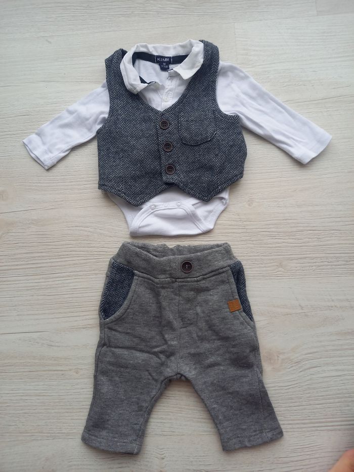 Ensemble 3 pièces pour garçon taille 1 mois Idéal pour la sortie de la maternité ou pour les photos Très bon état Marque Kiabi